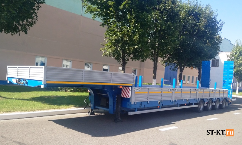Минский автомобильный завод, в состав которого входит известный белорусский производитель прицепной техники «Могилевтрансмаш», за последнее время включил в линейку своей продукции сразу несколько новинок прицепов и полуприцепов. В их числе – четырехосный трал МАЗ-994900-021 с 11-метровой грузовой площадкой, который при снаряженной массе 12,2 тонны способен перевозить технику массой до 52,8 тонны. Общая габаритная длина полуприцепа в транспортном положении 16 м, высота седельно-сцепного устройства 1380 мм. За счет уширителей ширину грузовой площадки можно увеличить с 2,5 до 3 м. Трал оборудован пневматической подвеской, передняя ось сделана подъемной, гидравлические трапы обеспечивают угол заезда в 12 градусов.