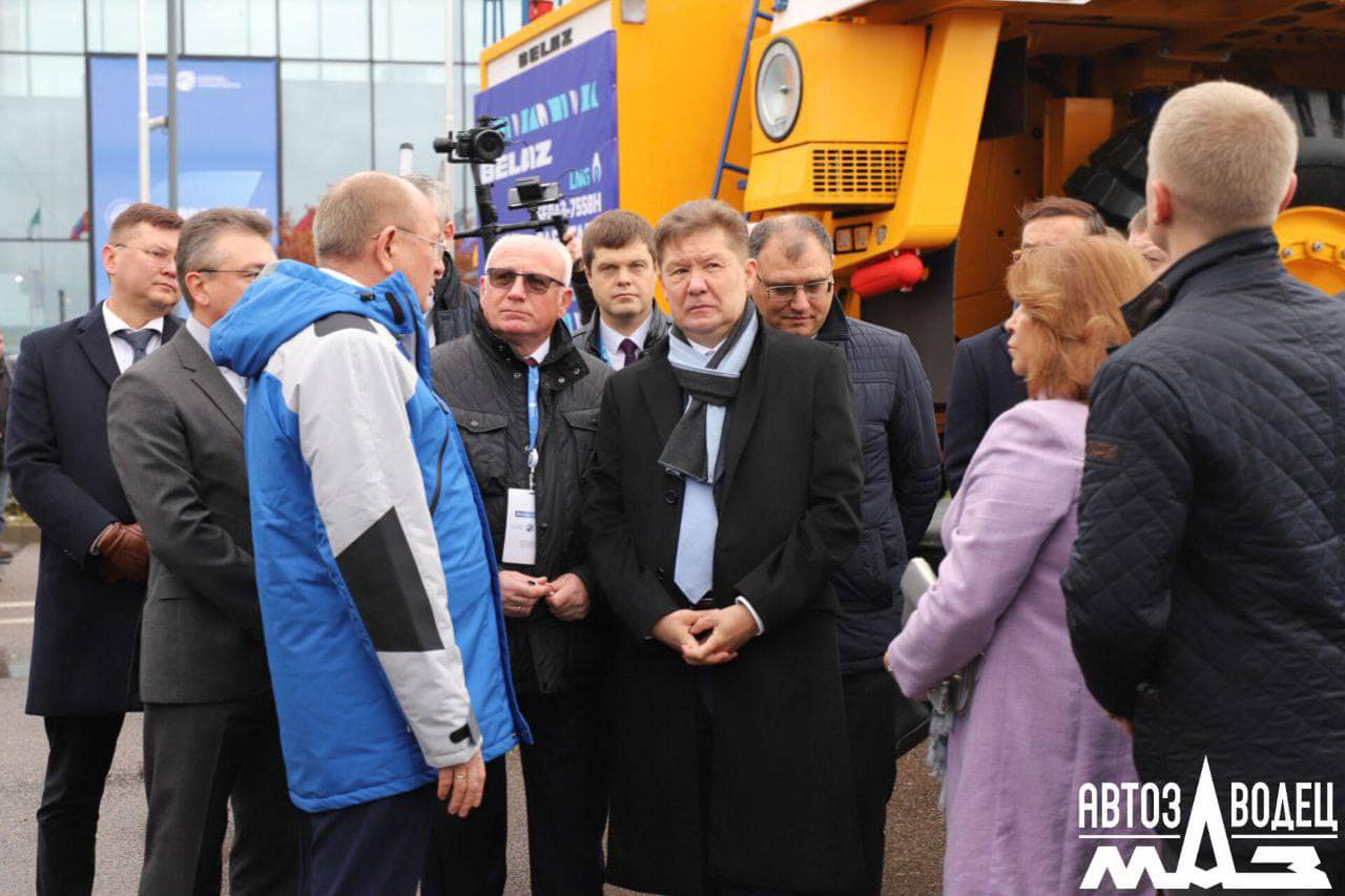 Экспозицию Минского автомобильного завода на Петербургском газовом форуме посетил Председатель правления и заместитель председателя совета директоров ПАО «Газпром» Алексей Миллер.