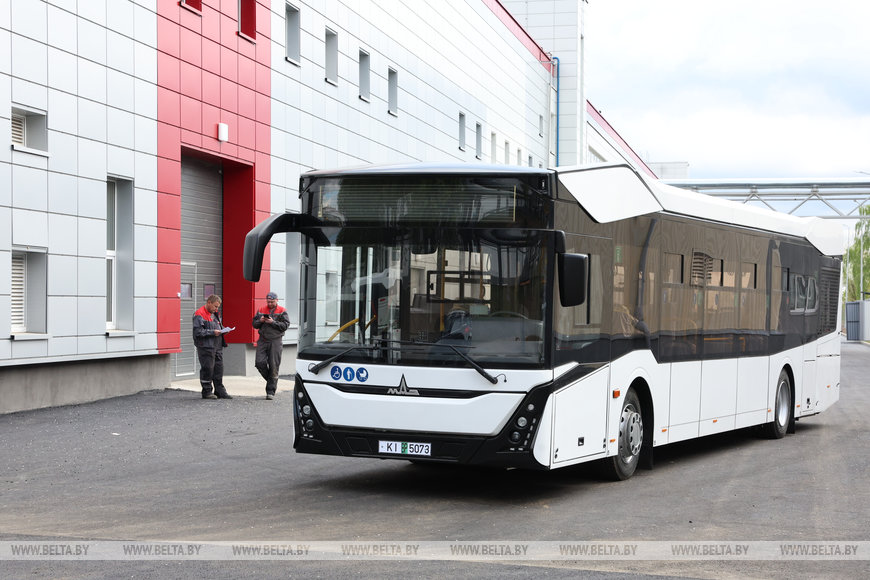 Кстати, первый выпущенный на новом заводе автобус вместе с другой партией направится в Могилевскую область. Это принципиально новая модель Минского автомобильного завода - автобус третьего поколения МАЗ 303047.