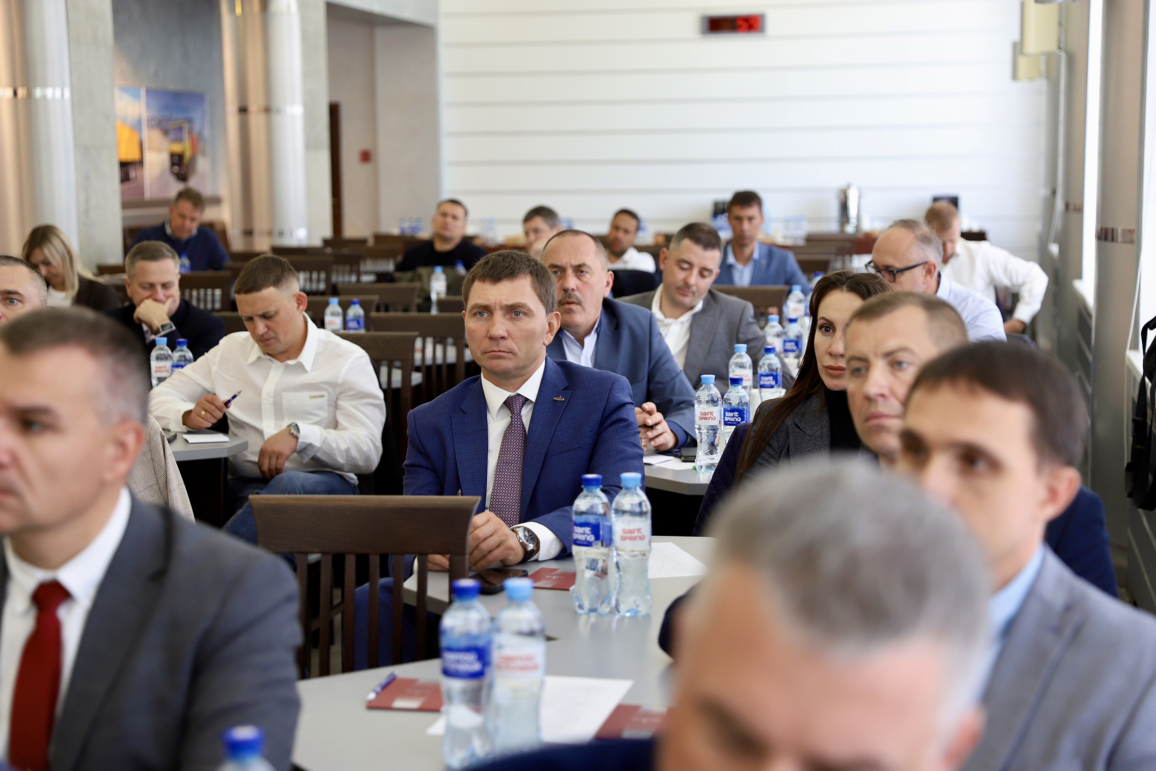 После участники встречи направились в переговорный зал. О текущей ситуации продаж и стратегических задачах по реализации пассажирской техники МАЗ до 2030 года рассказали заместитель генерального директора ОАО «МАЗ» - управляющая компания холдинга «БЕЛАВТОМАЗ» - коммерческий директор Сергей Шуляк и заместитель коммерческого директора по реализации пассажирской техники - начальник управления продаж пассажирской техники Владимир Дормаш. Разработанной и функционирующей системой по техническому сервису поделился заместитель коммерческого директора - директор по сервису, гарантии и реализации запасных частей Андрей Завгородний.