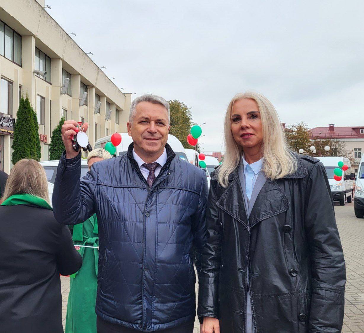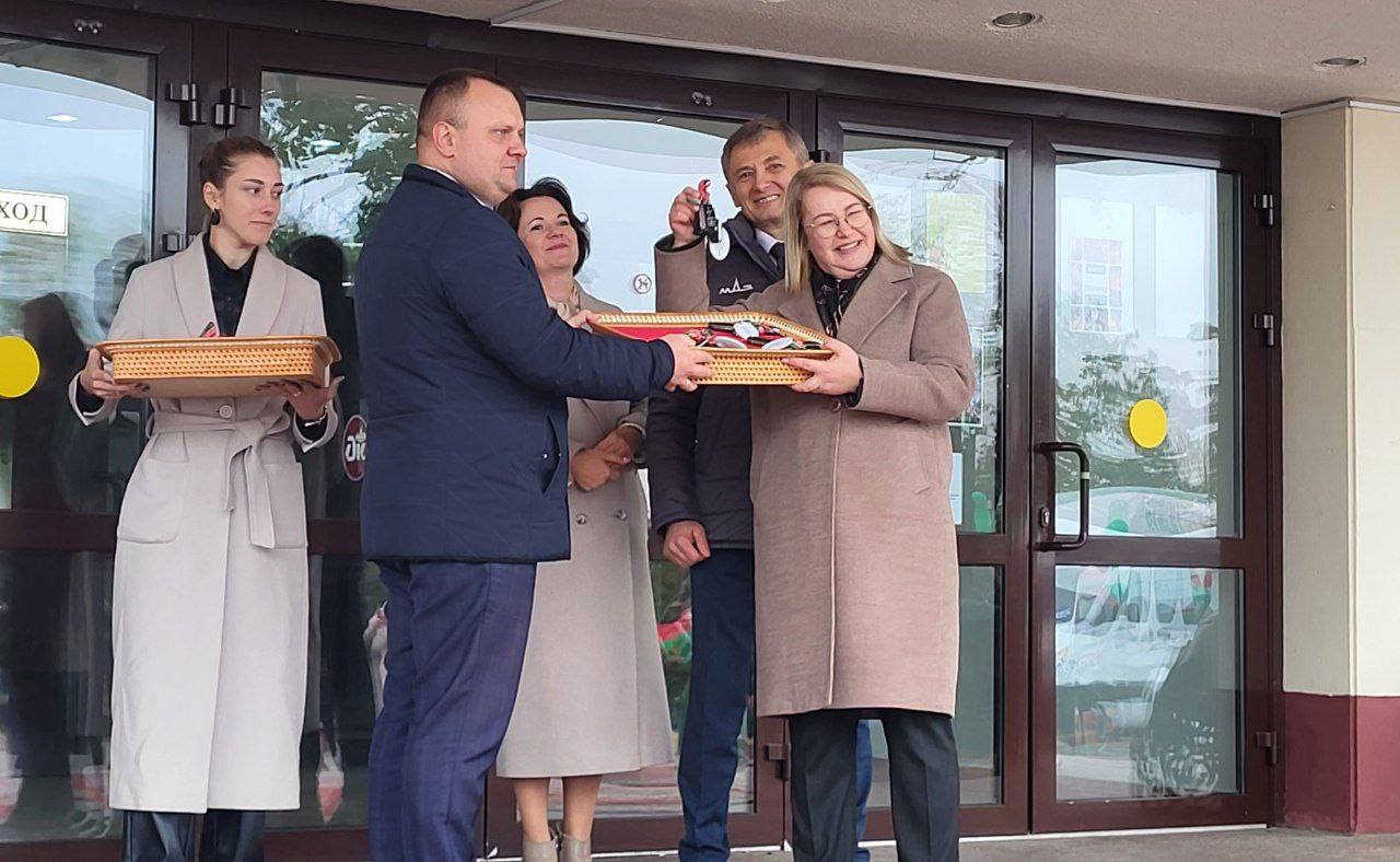 Ключи от новых машин вручили Министр труда и социальной защиты населения Наталья Павлюченко, заместитель генерального директора - директор по эффективному управлению и взаимодействию дочерних компаний холдинга «БЕЛАВТОМАЗ» Геннадий Тумилович и директор ОАО «Брестмаш» Иван Ганчиц.