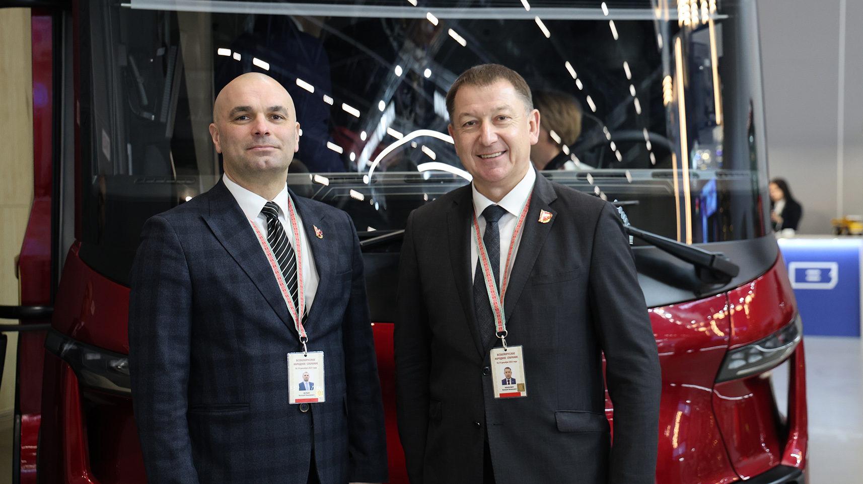 Увидеть, каких результатов в различных отраслях экономики достигло наше государство, в первый день заседания, 18 декабря, приехали руководители министерств и ведомств, депутаты, представители предприятий, учреждений образования, науки, здравоохранения, спорта, общественных организаций, средств массовой информации… Из числа посетивших тематическую зону «Двигатель экономики», где свою продукцию представил МАЗ, были и те, кого точно знает каждый белорус. Например, Председатель Совета Республики Наталья Кочанова, Министр внутренних дел Владимир Кубраков, Председатель Минского городского исполнительного комитета Владимир Кухарев, Герой Беларуси, первая белорусская женщина-космонавт Марина Василевская, Народный артист Беларуси Владимир Громов, Заслуженная артистка Беларуси Алена Ланская и многие другие. Стенд белорусской промышленности посетили и депутаты Мингорсовета: генеральный директор Минского автомобильного завода Валерий Иванкович и генеральный директор МАЗ-Купава Виталий Якубов.