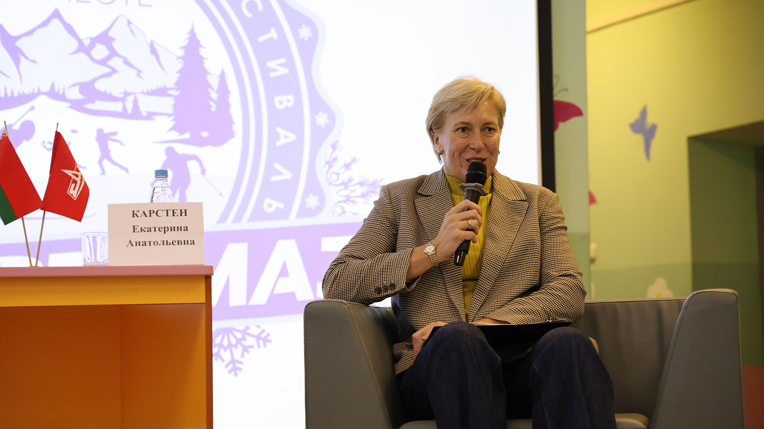 Кульминацией ярких выходных стал открытый диалог, в рамках которого у участников зимнего спортивного фестиваля была уникальная возможность пообщаться с особенным гостем - Первой двукратной олимпийской чемпионкой в истории независимой Беларуси, шестикратной чемпионкой мира в гребле на одиночке, Заслуженным мастером спорта СССР, Первым в истории страны полным кавалером Ордена Отечества Екатериной Карстен. Помимо вопросов спортивных, поговорили и о качествах руководителя с председателем профсоюза «БЕЛПРОФМАШ» Валерием Курсевичем.
