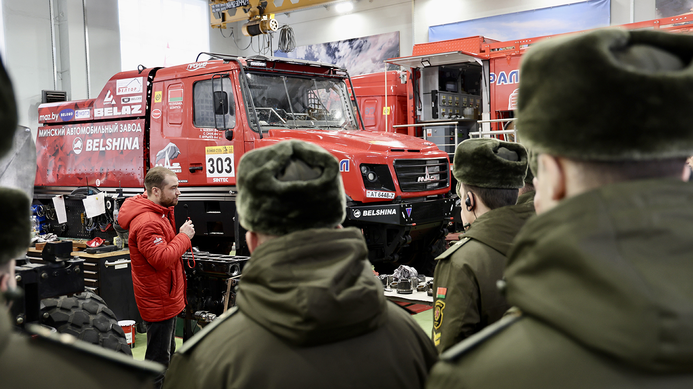 Минский автомобильный завод гостеприимно распахнул свои двери военнослужащим. К слову, 49-я радиотехническая бригада — старейшее соединение Вооруженных Сил Республики Беларусь с более чем 90-летней историей, которая охраняет воздушное пространство на самых ответственных направлениях нашей страны.