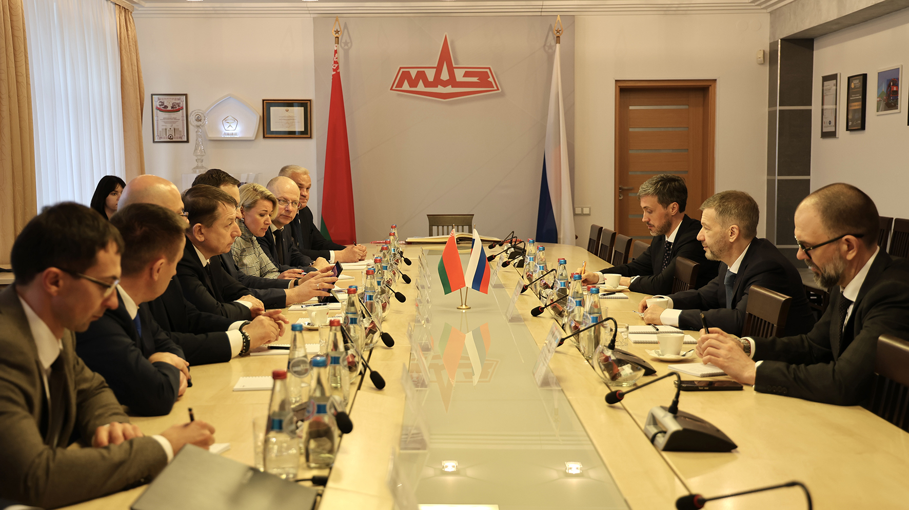 После ознакомления с техникой МАЗ стороны перешли к предметному обсуждению потребностей региона в автотранспорте различного назначения — от вахтовых и пожарных машин до техники для перевозки опасных грузов и пассажирского транспорта.