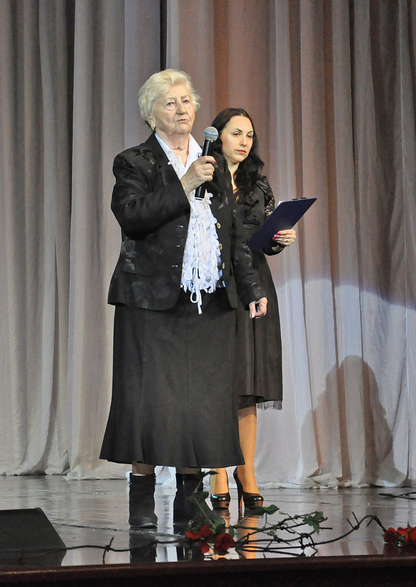 А со сцены вновь и вновь звучали проникновенные слова, как дань глубокого уважения тем, кто спас от гибели немногих оставшихся в живых детей, кто освободил их из концлагерей, тюрем, гетто. Про героизм и жертвенность солдат, офицеров, партизан, разгромивших фашизм, про все то, что достойно всеобщего преклонения. Такая тематика прозвучала и в выступлениях представительницы городского женсовета (бывшей узницы концлагеря «Озаричи») Надежды Григорьевны Лось, главы ветеранской организации узников Заводского района Инессы Георгиевны Кулаго, председателя клуба «Ветеран», также бывшей узницы Александры Витальевны Наркевич.